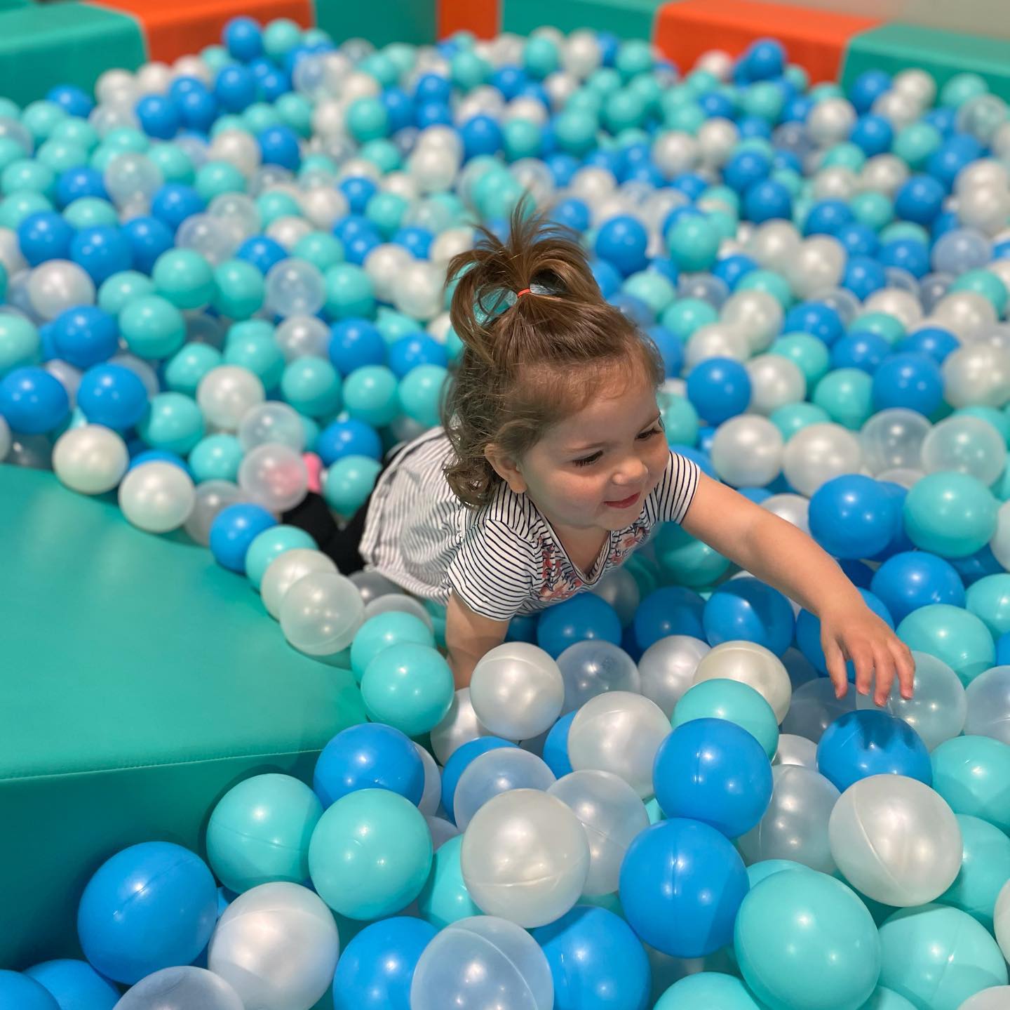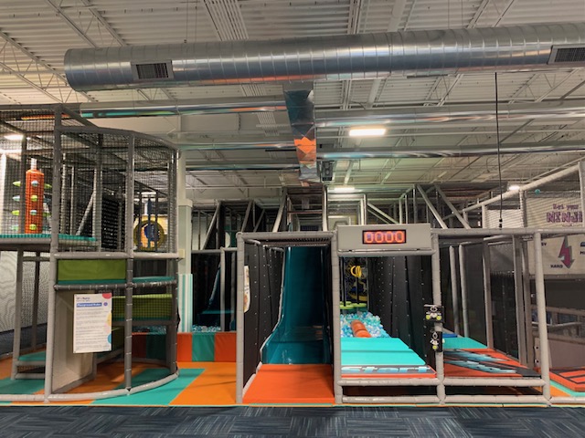 Our space features a play structure over 1,500 square feet! From multiple slides, a ball pit, ball blaster arena, and mini ninja course, there is plenty for your high energy kiddos to run off some steam!